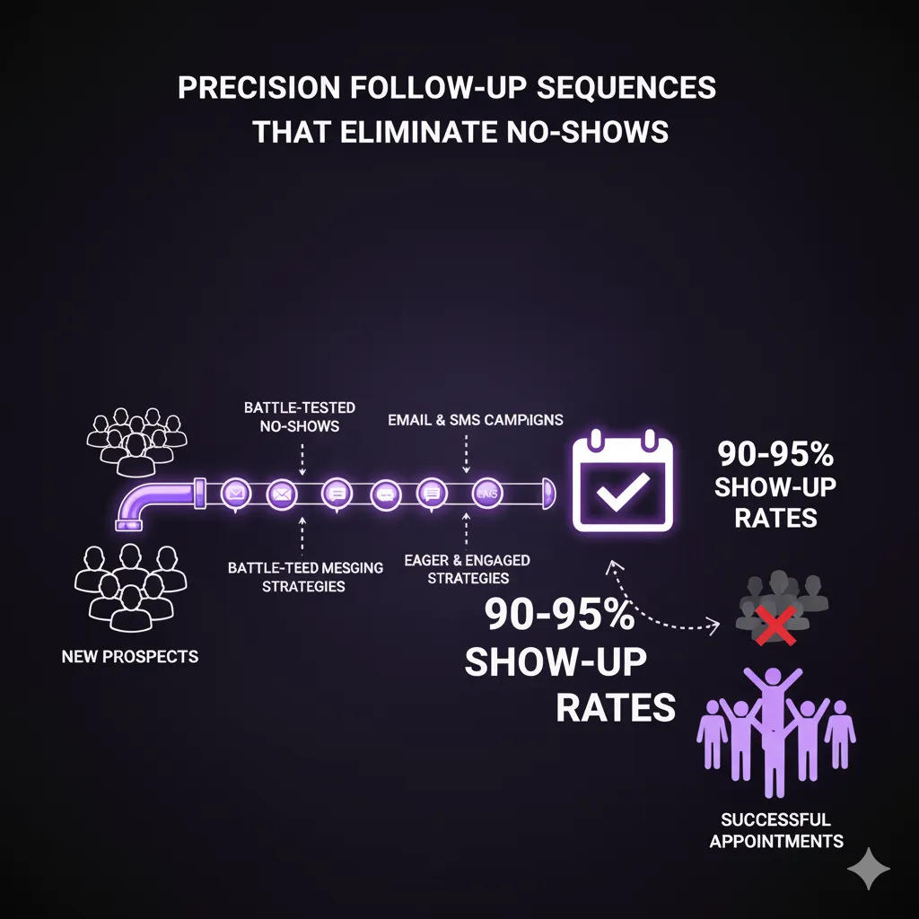 We engineer custom powerful Email & SMS campaigns proven to achieve 90-95% show-up rates, a metric most agencies can't even dream of hitting. Our battle-tested messaging strategies ensure your prospects arrive eager, engaged, and mentally pre-sold before the call even starts.